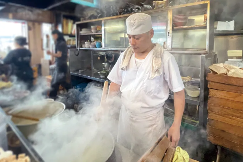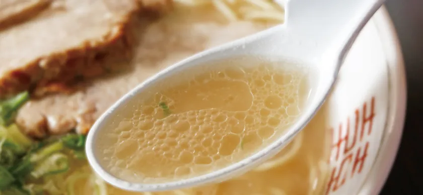豚頭のみを使用した、キレとコクを兼ね備えた臭みのないスープ。その秘密は「新しいスープ」と「熟したスープ」とのブレンド。「新しいスープ」にはキレがあるが、コクがない。そのコクを引き出すのが「熟したスープ」なのです。