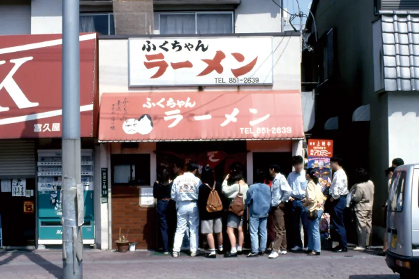 新横浜ラーメン博物館がオープンする前、博多代表として「ふくちゃんラーメン」、「八ちゃんラーメン」、「一風堂」といった店舗が候補に挙がっていました。当館が誘致活動を始めた1992年頃、博多で圧倒的に支持を受けていたのは、当時百道にあった「ふくちゃんラーメン」でしたが、その当時、お店があまりにも忙しく、話をしていただける時間もほとんどないような状況でした。