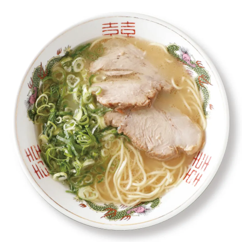 一般的に九州のラーメンは極細という認識をもたれているのですが、替え玉の発祥である長浜の流れを汲むラーメン店がそうであり、本来博多の麺は長浜より少し太い麺が昔から使われていました。ふくちゃんラーメンの麺は、その昔ながらの博多の麺を使用。麺は低加水(小麦に加える水の量が少ない)のため、濃厚なスープを吸い込み相性は抜群です。