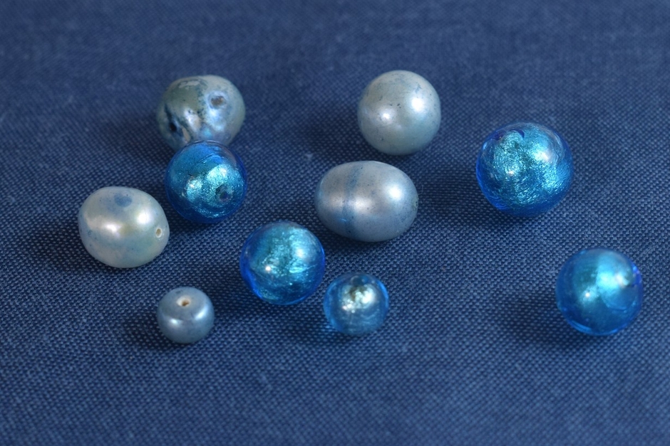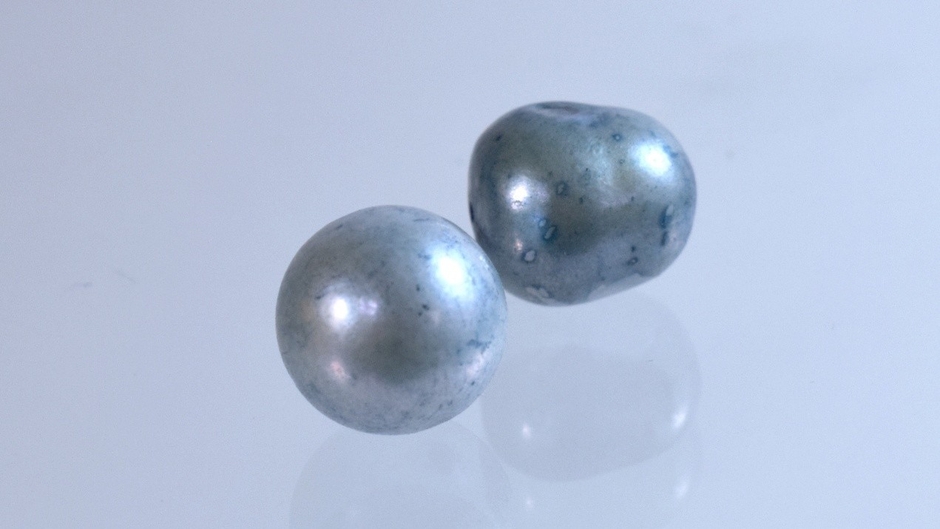 藍パール®は徳島県産の蓼藍(タデアイ)から作った阿波藍(=すくも)を、日本古来の藍染技法「発酵建て」で200時間もかけパールを染め上げています。人工着色で色を均一にするパールと違い、藍染では一点一点色のムラが生じますが、その分優しい色合いの青で染め上がり、上品な輝きを引き出しています。