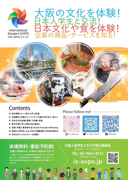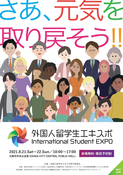 外国人留学生エキスポ実行委員会は、留学生の課題解決型イベント「外国人留学生エキスポ」を2021年8月21日~22日の2日間、大阪市中央公会堂にて開催いたします。