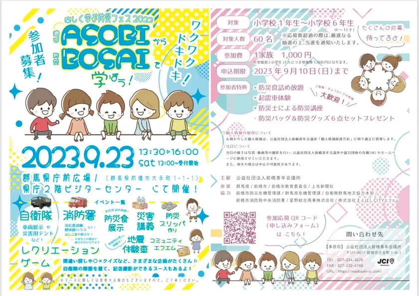 小学生向け防災フェス「楽しく学ぶ防災フェス 2023」 ASOBIからBOSAIを学ぼう!を9月23日に群馬県庁で開催