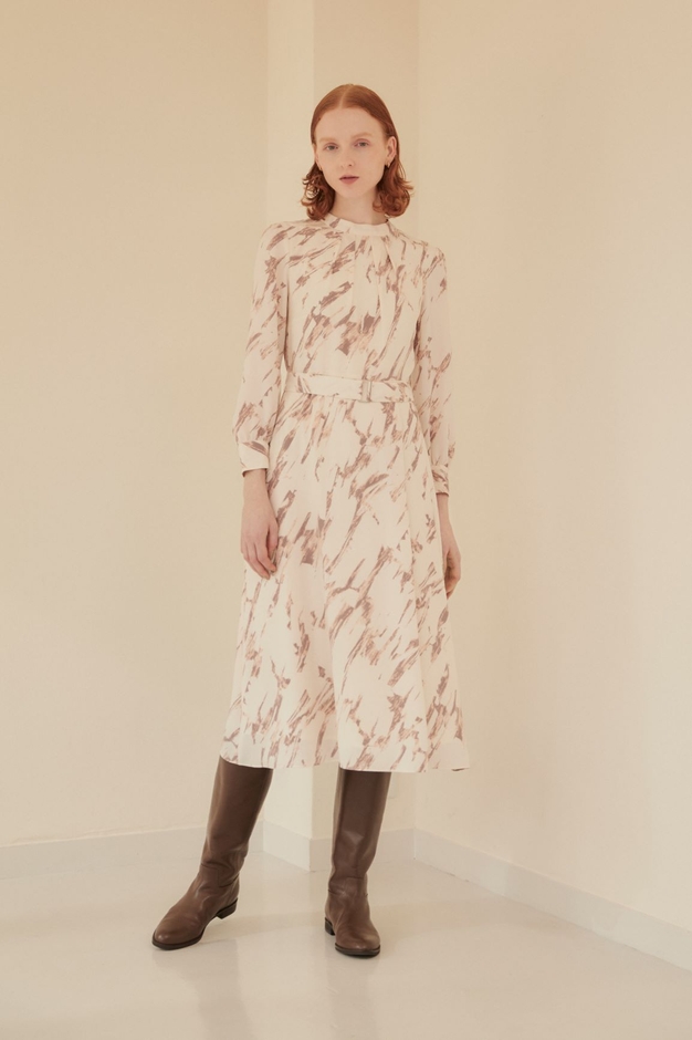 秋シーズンは、はけで描いたようなタッチのインパクトのあるオリジナルプリントが印象的なワンピース、この秋冬も引き続きトレンドのジレスタイルやパウダリーな手触りのシャツブラウスなどをニュアンスカラーで表現。