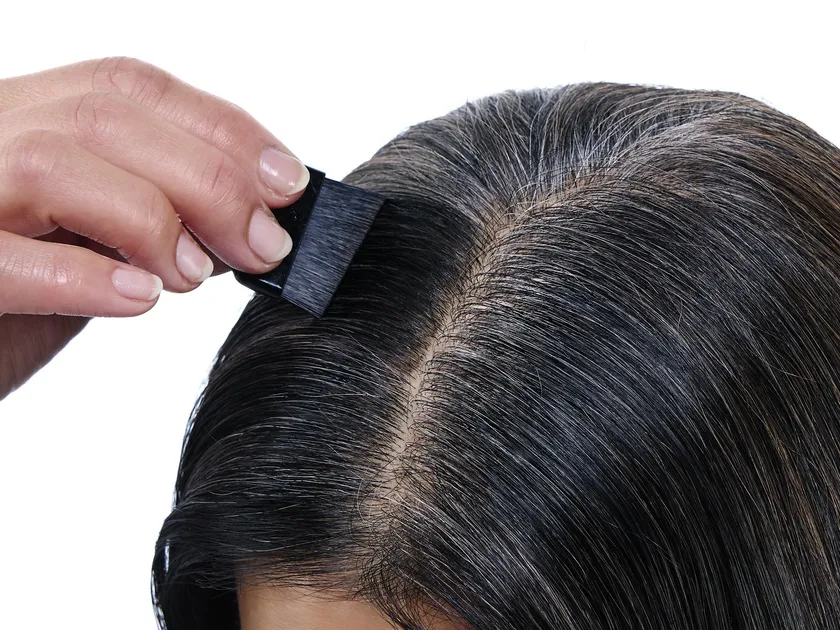 髪の根元から離れた場所から塗り始めると、地肌につきにくくなります。