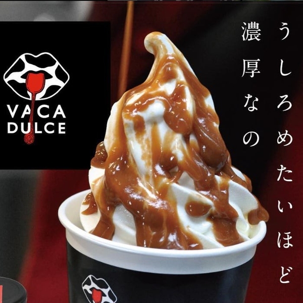 千本松牧場牛乳を煮詰めて作ったミルクソースをソフトクリームにかけた週末だけの限定メニュー ※ゲート店限定