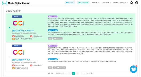 CCI、メディアマッチングプラットフォーム「Media Digital Connect」に独自アルゴリズムによるメディアレコメンド機能を実装