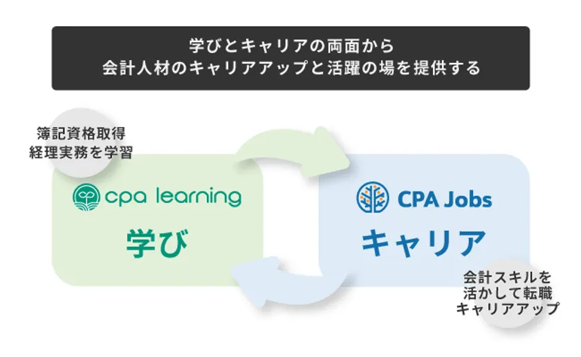 当社は「会計人材のインフラ企業」を目指し、公認会計士資格スクール「CPA会計学院」や簿記や会計を完全無料で学べる「CPAラーニング」などを通じて、会計人材の育成と学習環境提供を行って参りました。また、会計人材の転職サポートを行う「CPASSキャリア」では高度会計人材の紹介を行っていましたが、未経験から経理・会計実務を行う方まで幅広く活躍してもらう重要性を感じていました。そのような背景からキャリアアップとスキルアップの同時実現を目指し、会計人材特化型求人サイト「CPAジョブズ」を提供開始することになりました。