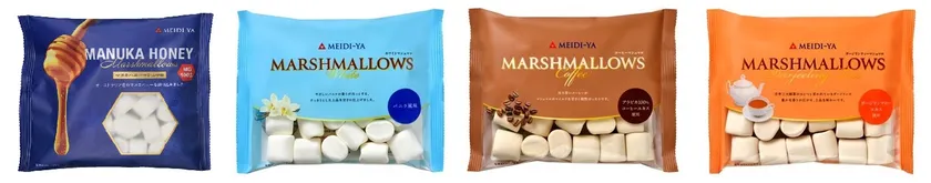 明治屋「マヌカハニーマシュマロ」新発売! 明治屋レギュラーマシュマロ3品もリニューアルして 9月1日(金)同時発売