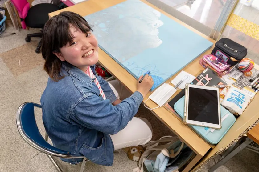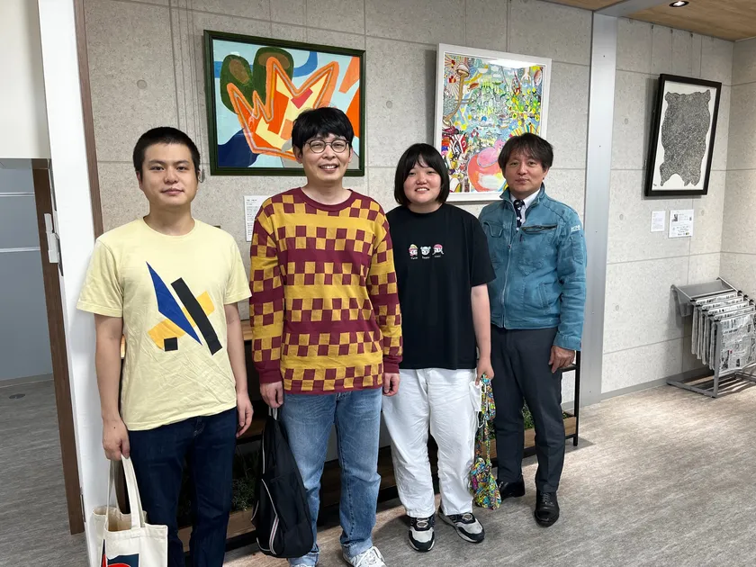 「障がい者に対する世間の理解や置かれている状況などまだまだ日本社会では障がい者が自立して生活することがいかに難しいか」という話を聞かせて頂きました。お話の中である協力企業の社長のお話がありました。ご自身のお子さんが障がいをもって生まれ、今の日本では将来一人で生きていくことが難しいのではないかと危惧し、障がい者でも働ける職場づくりや障がい者向けのビジネスも始められたという内容でした。そのお話を聞いた時に、私の家族には障がい者はいませんが、いつ病気や事故で障がいを持つことになるかわからないですし、社員の身内や家族に障がいをもった子供が生まれたりした時に、将来的な不安をもったまま仕事をしてもらうことになってしまう、それでは安心して仕事に取り組むことができないのではないかと考えるようになりました。我が社が社員に対して具体的に何ができるかはまだ正直わかりません。それでも全力でサポートしていきたいと本気で思いました。そこで全社員に向けて私の思いを話、障がい者の方が書いた絵を飾ることを通して、「なにがあっても会社は従業員みんなとその家族を守る。」というメッセージを発信していくことを伝えました。それがありがとうファーム様の作品を飾ることを決めた一番の理由です。今回3人のアーティストの絵を購入させて頂きましたが、我が社の為に新たに描き下ろしてくれた唯一無二の作品です。テーマは「尾道」です。