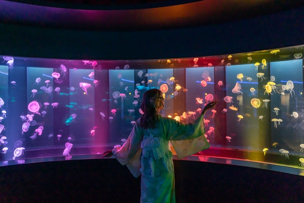 ぜひ夢館のオリジナルクラゲ柄の浴衣×クラゲ帯結びを着用して、京都水族館のクラゲを見に行ってください。クラゲづくしで、癒しと高揚感の両方を味わえる至福のひと時を過ごせると思います!
