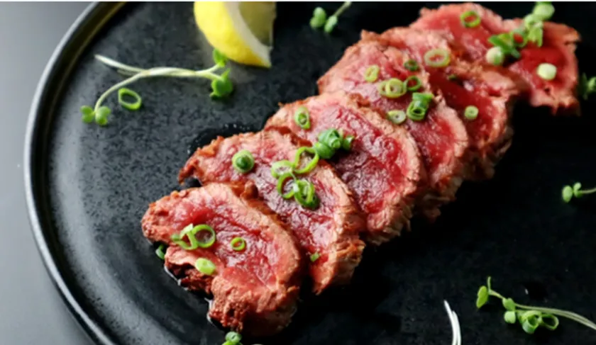 色が濃く、厚みがあり、とてもきめ細かくて柔らかいのが特徴です。シャトーブリアンを馬刺しとして生食でも、加熱しても食べられるのは馬肉ならでは。加熱しても驚くほどの柔らかさとともに美味しさをご堪能いただけます。