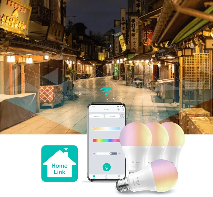 このBLEランプは、Wi-Fi接続を必要とせず、BLE(Bluetooth Low Energy)通信のみで操作が可能な製品です。さらに、Bluetoothメッシュネットワーキングを介して、一台のスマートフォンから理論上距離無制限で電球を制御できます。これにより、明るさの調節、ON/OFF切替、そしてカラーの変更までが自由に行えます。