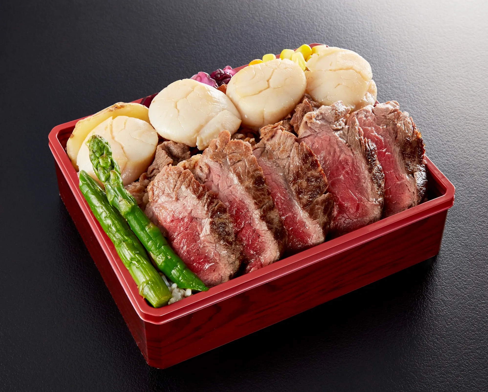 宗谷黒牛・猿払産ホタテ貝柱 ステーキ重DX