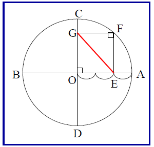 線分OA上にOE:EA=2:1となる点Eをとり、Eを通りOAに垂直な線と弧ACとの交点をFとする。