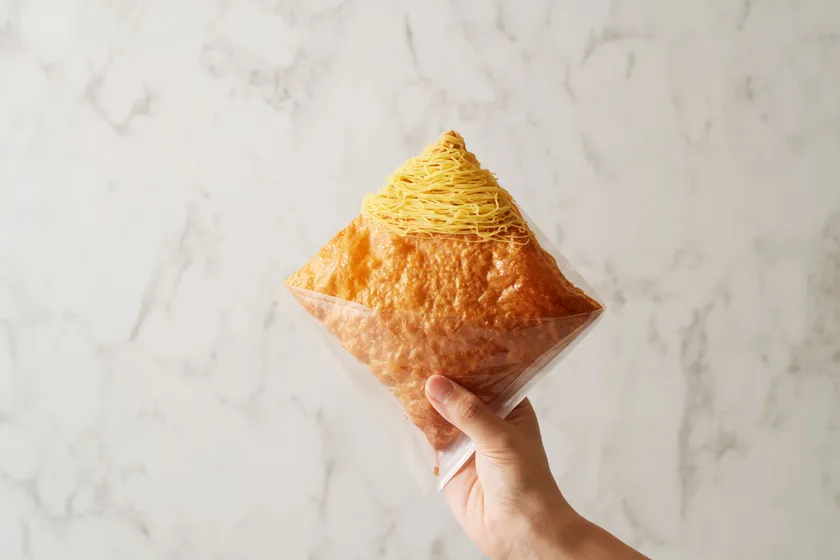 ふんわりとした濃厚お芋クリームを、目の前で絞り完成するお芋のモンブラン。アクセントにパリッと店内工房で揚げたお芋のチップスを添え、さらに贅沢な仕上がりに。食べ進めると、ひんやりとした中のアイスクリームとザクザク食感が楽しめるこだわりの構成。できたてならではの美味しさを、カフェスペースやテイクアウトでお楽しみください。