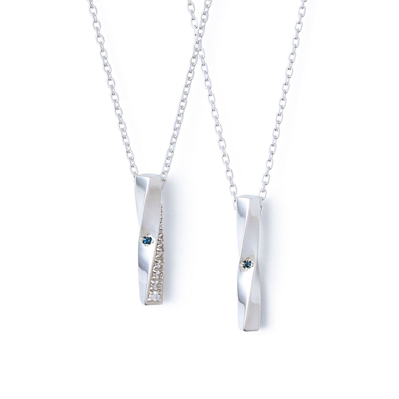 幸運を象徴するブルーダイヤモンドをセットしたペアネックレス 。