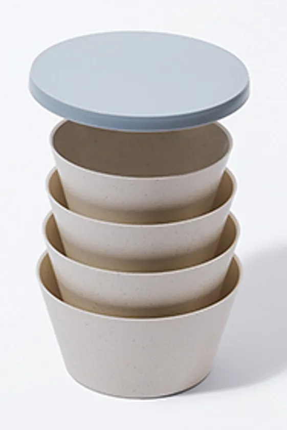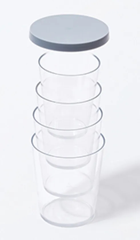tak FIT DISH(タック フィット ディッシュ)は4個パックでしっかり、すっきりと簡単に保管できます。タンブラー、ボウル、プレートにはそれぞれフタがあり、入れ子にしてフタを締めればコンパクトに持ち運べ、収納にも場所を取りません。