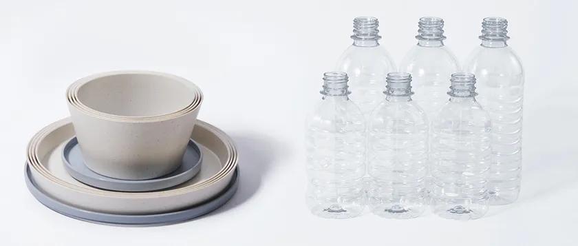 tak FIT DISH(タック フィット ディッシュ)のボウルとプレートは、リサイクルで回収したPETボトルを再処理し原料として使用しています。役目を終えたPETボトルを再利用して新たな命を吹き込む。使う人だけでなく、環境にも配慮した製品を作りたい。takは持続可能な社会のためにできることから始めます。