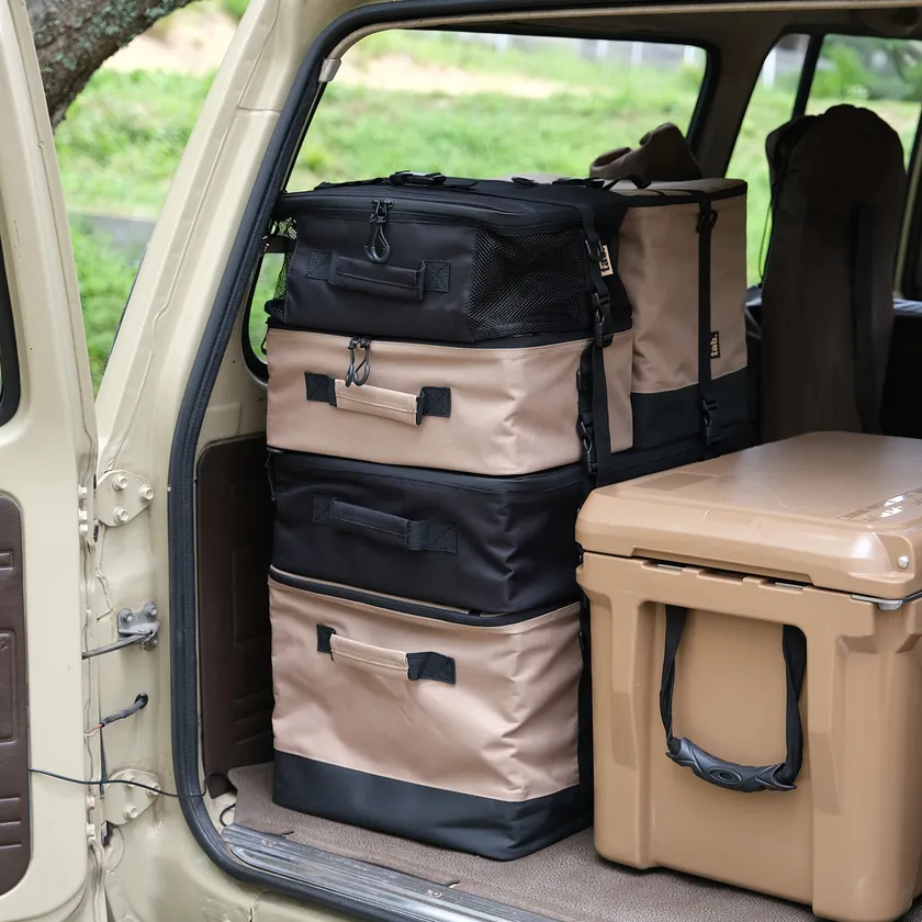 必要なサイズだけを選んで組み合わせることができるので、ソロキャンパーならSサイズとMサイズ、ファミリーキャンパーならフルセットなど、使う人や入れたいものに合わせて組み合わせ自由自在。一人ひとつ好きなコンテナを選んで使っても、連結できるから荷物がコンパクトに。キャンプに限らず、旅の荷物の整理と管理が簡単です。