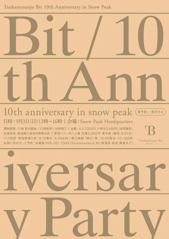 日頃のご愛顧に感謝の気持ちを込め、新潟・三条市にあります「snow peak Headquarters」にて10周年記念BBQパーティーを開催させていただきます。