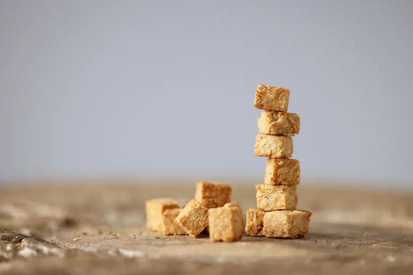 有機オーツ麦とココナッツを合わせた香ばしいザクザクのビスケットは、かわいい約2cm角のキューブ型。たまご、砂糖、バター、小麦不使用のグルテンフリーです。オーツ麦はグラノーラに使用しているものより細かいタイプを使っているため、口溶けが良く、程よい食感がクセになります。