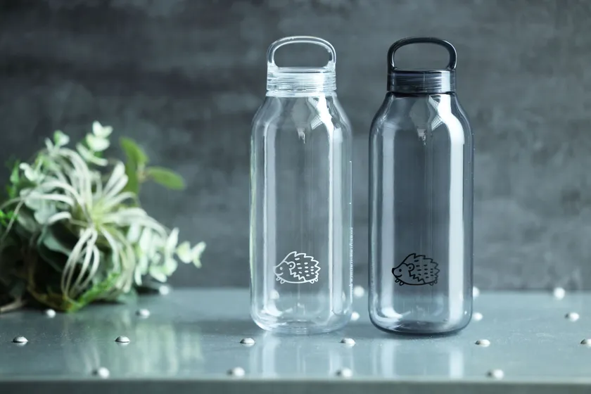 KINTOとの夢のコラボが実現。8周年記念商品「KINTO ウォーターボトル 500ml」はハリネズミのロゴ入り。飲み物が入れやすい広い開口部。軽くて丈夫なボトルは普段使いにも、アウトドアではカラビナにもかけられ、自転車のボトルケージやリュックのポケットにもすっぽり収まります。