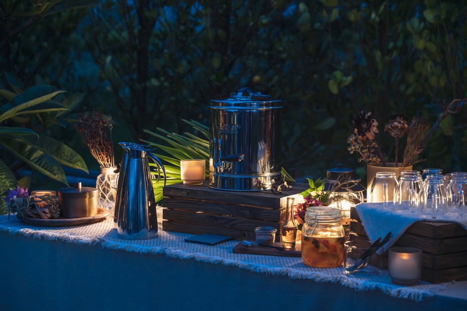 2021年12月1日〜2022年1月31日の期間中、星のや沖縄に隣接する国内最大規模の海カフェ「星野リゾート バンタカフェ」では、夜の海辺が幻想的に輝くイルミネーション「イルミーバンタ 海辺の夜あかり」を開催します。バンタカフェの前に広がる海や白砂のビーチ、波に削られた奇岩など、入り江全体がライトアップされ、幻想的な世界が浮かび上がります。合わせて、期間中は散策を楽しむアイテムとして、お散歩スープセットを販売します。ランタンを片手にお気に入りの席を見つけて、夜のピクニックを楽しめます。また、日程限定で登場する「夜あかりマルシェ」では、沖縄生まれのアイテムの購入や、沖縄の自然を身近に感じられるワークショップを体験できます。