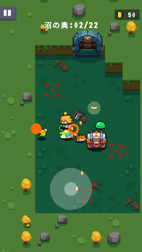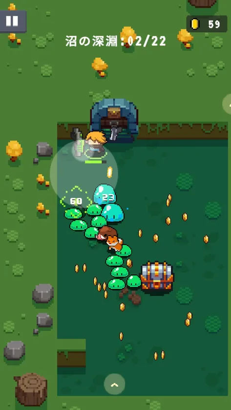 「元気特攻」は操作が極めてシンプルで、片手でも多彩なアクションを繰り出せます。10分あればステージ1つを攻略できるので、忙しい時でもできます。ローグライク好きな方でも、シューティングアクション初心者の方でも、爽快なバトルを楽しめます。