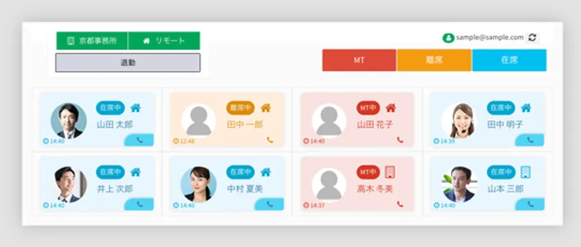 テレワークを導入してから、メンバー同士のコミュニケーション機会が少なくなり作業効率や生産性が悪くなっていませんか?『ChatdeRemote』の在席ステータス機能は、自分以外のメンバーが「在席・離席しているのか、ミーティング中なのか」がリアルタイムで確認できます。