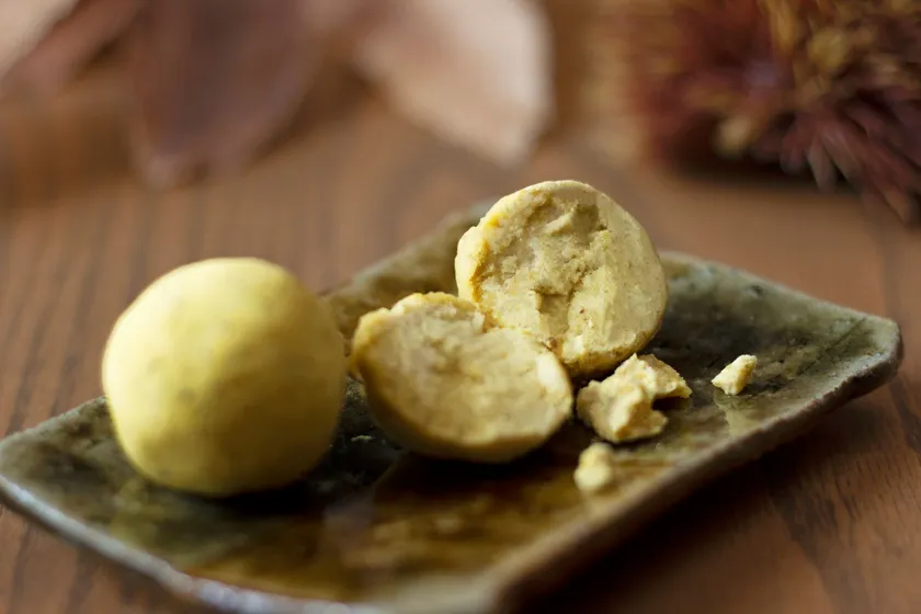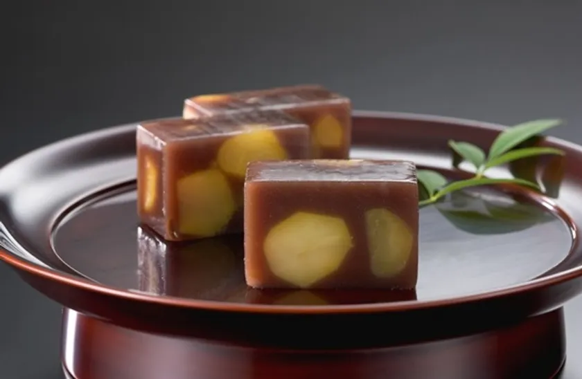 京都で話題の日本茶カフェ。中に抹茶のムースとあずきが入った和スイーツ。