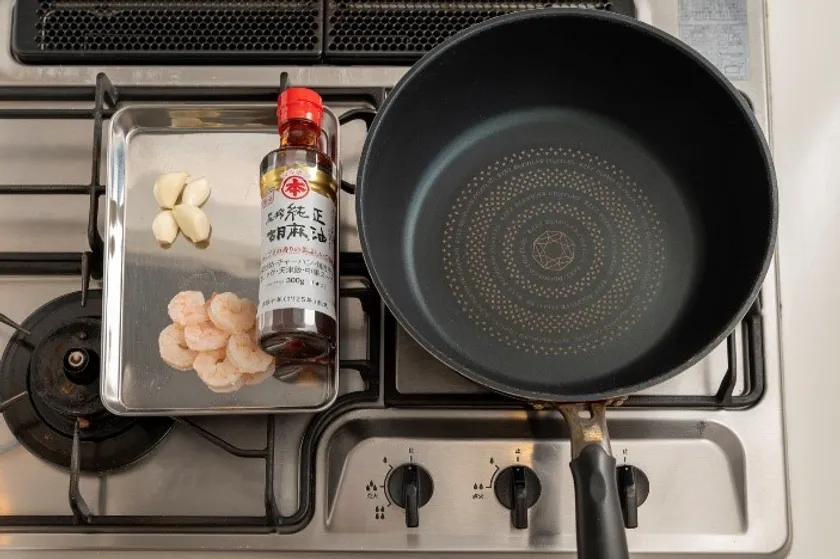 参加者が事前アンケートの回答を終了した後、実験者は実験スペースに併設されたキッチンスペースにおいて以下3つの条件で調理(全ての条件でエビのオイル煮を使用)を行い、実験室内に香りの拡散を行った。なお、調理の有無や内容について参加者に対して明示的な説明を敢えて実施しないことで、発生する香りに参加者の意識や注意が意図的に向かないように配慮した。