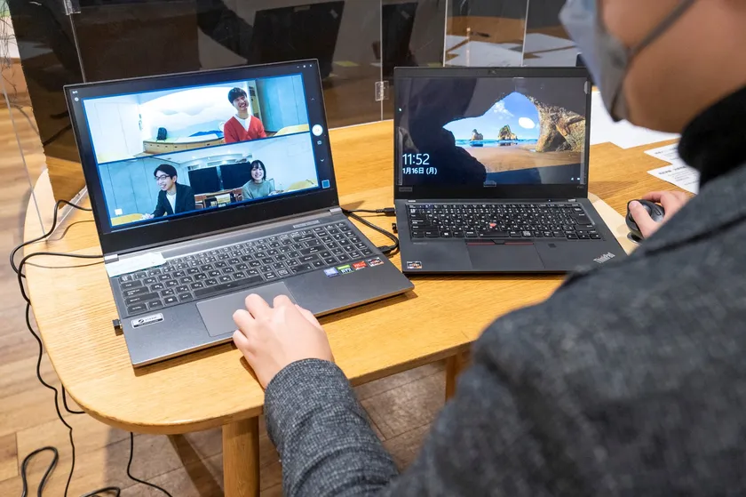 会話実験中の参加者の様子。