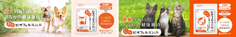 近年、ペット医療の発達や栄養価の高い食事などによりペットの平均寿命は伸長しています。一方これに伴い、ペットの高齢化も進んできており、人間同様「健康に長く生きること」が課題となっております。その中で、腸内フローラ(腸内細菌叢)のバランスを整える事が重要視されてきております。大正製薬では今までビオフェルミンブランドを手掛けてきた知見などを活かしペット用サプリメントの開発を行うことで、家族の一員であるペットのおなかの健康維持をサポートできる製品を発売いたしました。