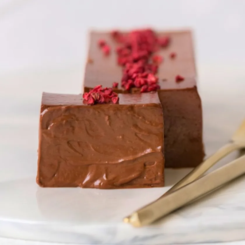 オーガニックチョコレートや絹豆腐、甜菜糖、有機メープルシロップなど厳選した素材の特性や相性を熟知し一つひとつの工程を丹念に磨き上げることで生チョコのような濃厚なくちどけのヴィーガンチョコレートテリーヌにリニューアルいたしました。