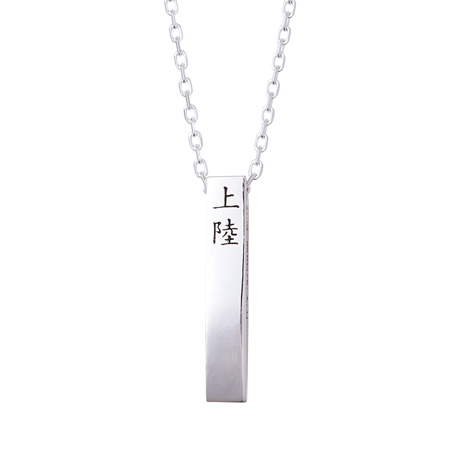 表面には帯と花の模様をモチーフにデザインへ取り込み、裏面には上弦の陸の「上陸」を黒いぶしで刻印しました。