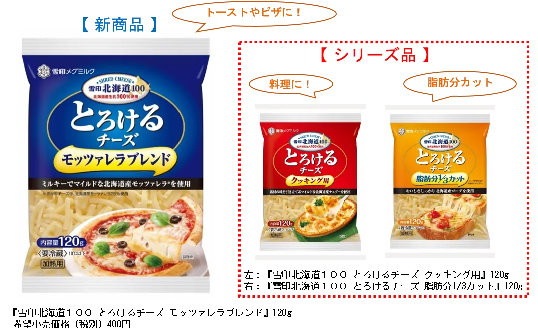 雪印メグミルク株式会社(本社:東京都新宿区、代表取締役社長:佐藤 雅俊)は、『雪印北海道100 とろけるチーズ モッツァレラブレンド』(120g)を2023年9月1日(金)より全国にて新発売いたします。