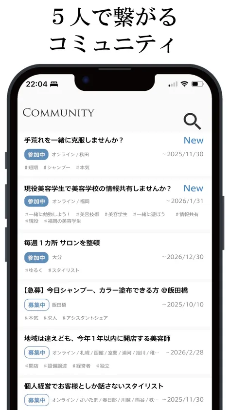 ■5人で繋がるコミュニティ(美容師SNS)