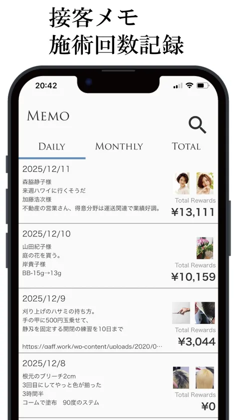 ・「接客時のメモ」、「業務対応件数の記録」が可能。
