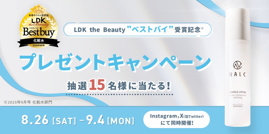 【LDK the Beauty ベストバイ受賞記念キャンペーン】大人気『NALC 薬用ホワイトリンクルローション』を合計15名様にプレゼント!8月26日より開催!