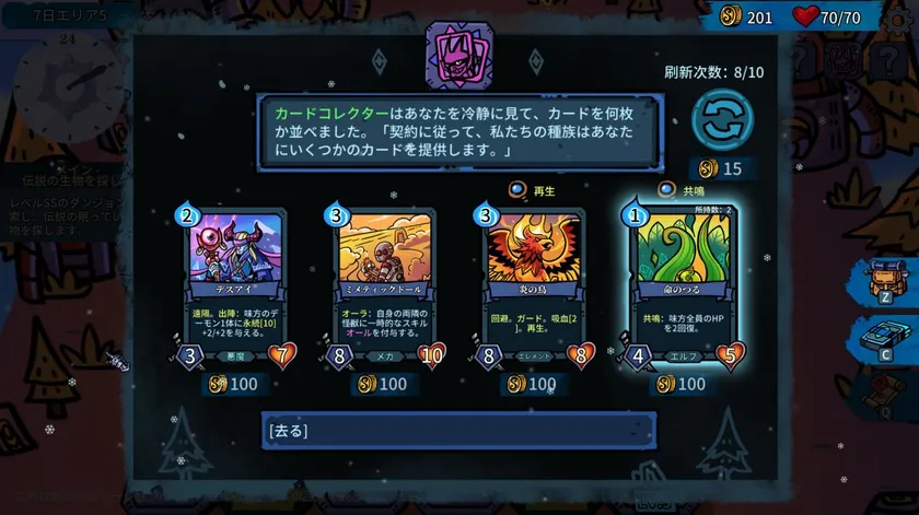 さらに、カードの能力はさまざまな方法で永続的に向上させることができ、数十種類のユニークなスキルを持つカードが揃っています。最も低いランクのカードであっても、戦闘を繰り返すことで強力な存在へと成長することができるため、カードたちを成長させる楽しみを体感してください。
