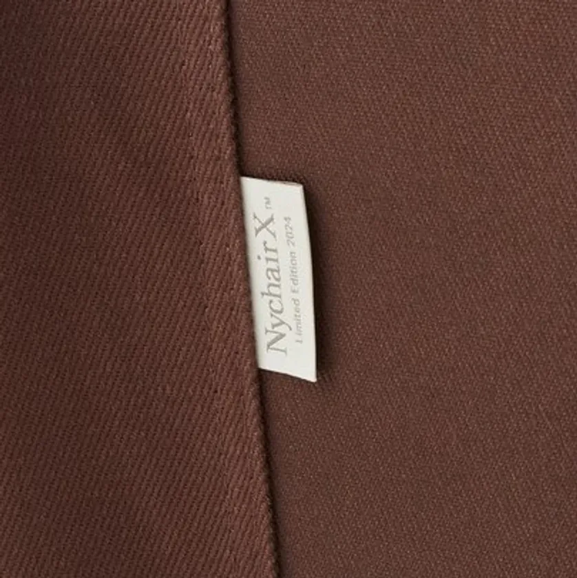 身体を支えて包み込むニーチェアエックスの専用シート生地は、新色「アースモーヴブラウン」。