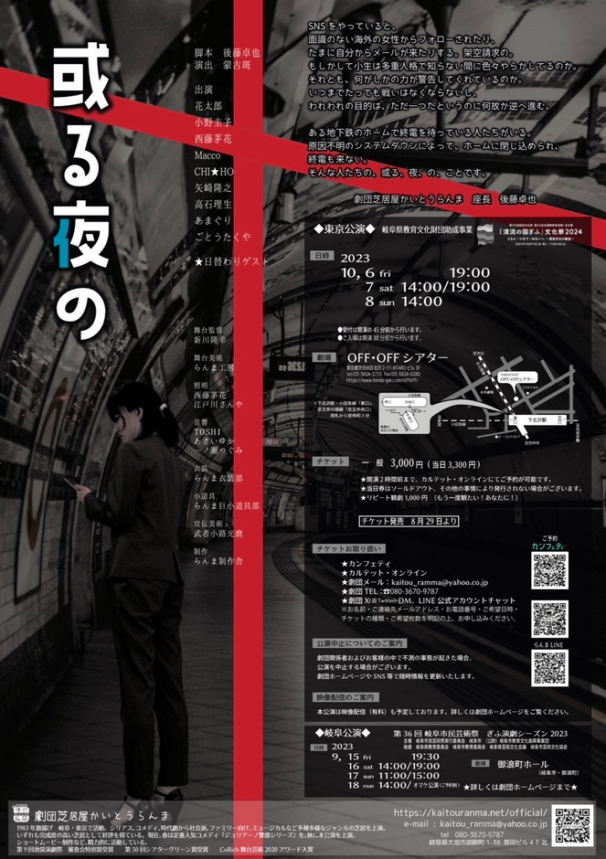 岐阜では知らぬものはいない?劇団芝居屋かいとうらんまの東京公演! 地下鉄のホームに取り残された人々の「或る夜の」不思議な物語!