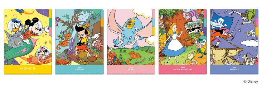サンスター文具株式会社(本社:東京都台東区、代表取締役社長:吉松 幸芳)は、ディズニー創立100周年を記念して、「復刻アート企画」の『レトロアートコレクション』の文具・雑貨シリーズ(全8種 330円~1,650円 税10%込)を2023年8月下旬より発売いたしました。第4弾は、1990年にカレンダー用として描き起こされたアートで「ミッキーマウス」、「ピノキオ」、「ダンボ」、「ふしぎの国のアリス」、「ピーター・パン」の全5柄でラインアップしています。