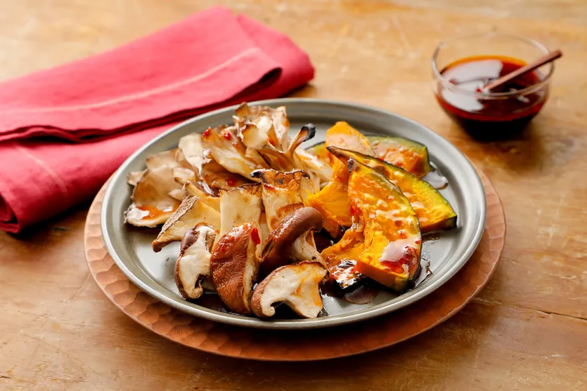 『ピリ辛ドレッシング×きのことかぼちゃのグリルサラダ』