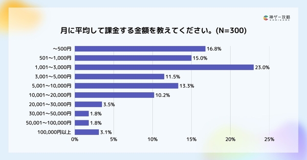 ・月間平均課金額は「1,001〜3,000円」が最も多く23%
