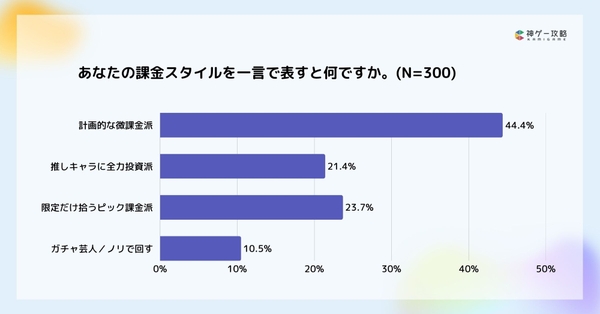 課金スタイルに対する調査では、計画的な微課金派が44.4%と最も多い結果でした。