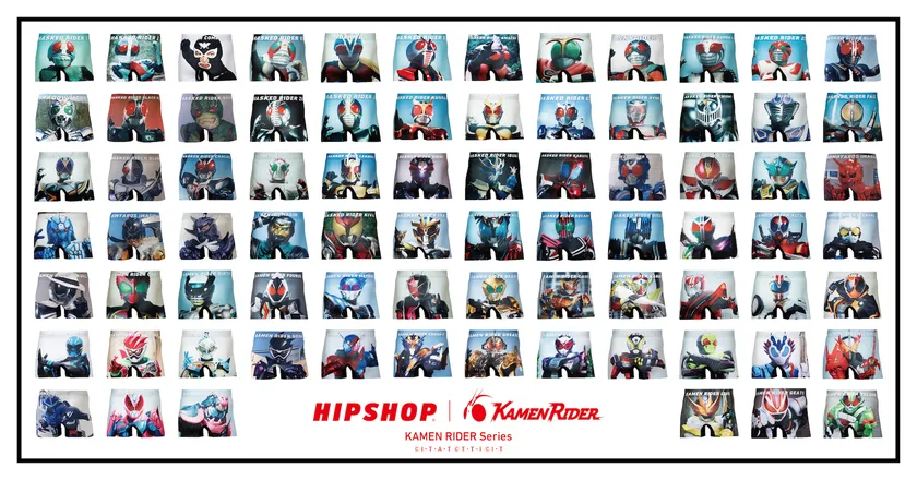 仮面ライダー生誕50周年記念企画 昭和・平成・令和 3世代を魅了する仮面ライダーが アンダーウェアブランド【HIPSHOP(ヒップショップ)】と コラボレーション! 圧巻の全78デザイン前代未聞一挙発売!