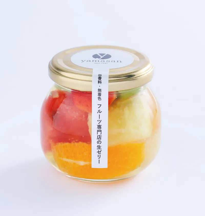 やまさんおすすめの厳選フルーツを、たっぷりと約8種類以上詰め込んだ人気No.1のゼリー。