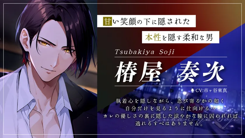 今度はオトナの男性らしい成熟した色気のある、いままでのカレとはまた雰囲気の違う“椿屋奏次”が貴女の心を狙い撃ちします。