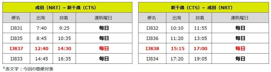 スプリング・ジャパン株式会社(本社:千葉県成田市、代表取締役社長:米澤 章、以下:スプリング・ジャパン)は2022年10月30日~12月31日の期間において、成田=新千歳線、広島線を以下の通り増便いたします。